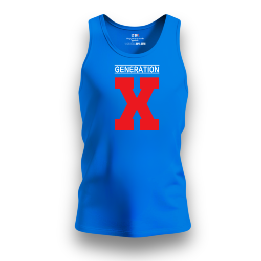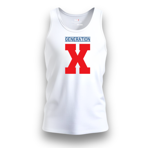 Débardeur Génération X en 100% coton, avec un col rond et une coupe régulière. Design minimaliste avec une inscription percutante et un message positif à l’intérieur. Disponible en bleu, jaune, noir, blanc, gris et bordeaux, de la taille S à 2XL. Idéal pour un look audacieux et confortable.