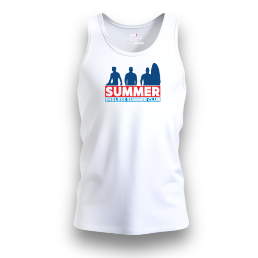 Dès les premiers jours ensoleillés, il devient essentiel d’avoir une tenue légère et confortable. Ce débardeur Summer Club répond parfaitement à ce besoin. Avec son design minimaliste et son motif inspiré de l’été, il incarne l’esprit des vacances. En effet, son visuel présente trois silhouettes masculines profitant de la plage, accompagnées de l’inscription “SUMMER” en grand, suivie de “Endless Summer Club” en contraste.