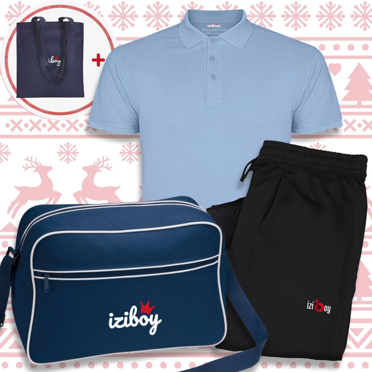 Sac de sport iziboy, polo 100% coton, jogging signature noir et sac cadeau. Style dynamique, confort absolu et -25% du PVC.