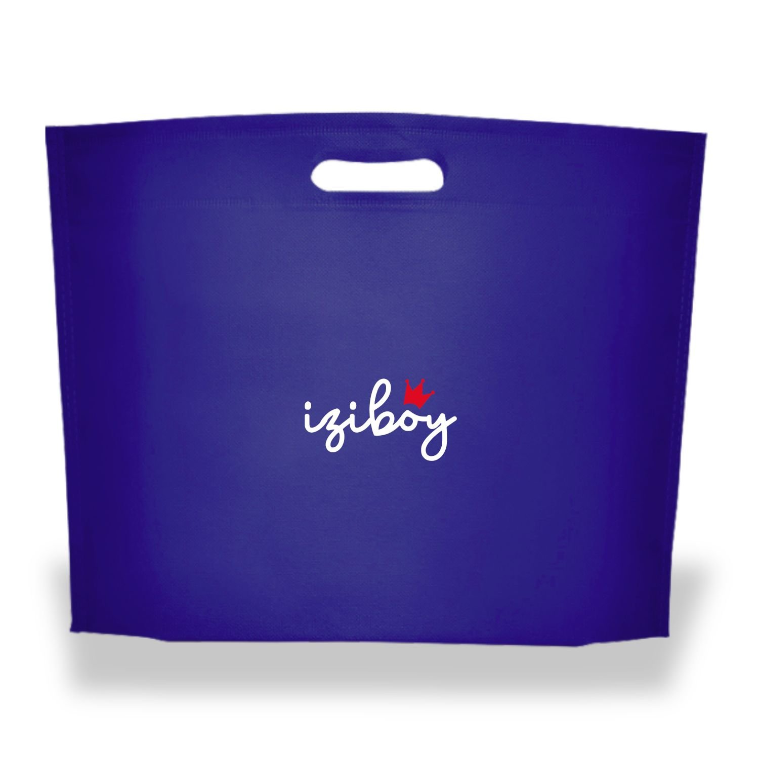 Le sac cadeau iziboy bleu marine ou bleu électrique sublime vos achats. Il affiche la signature blanche avec la couronne rouge. Conçu en 100 % polypropylène non tissé (80 g/m²), il reste léger, robuste et prêt à offrir. Non lavable.