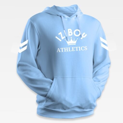 Le sweat à capuche iziboy “Athletics” combine style et confort. Fabriqué en 80% coton et 20% polyester, avec une capuche à double couche et une poche kangourou. Disponible en bordeaux, bleu ciel et gris chiné, du S au 2XL.
