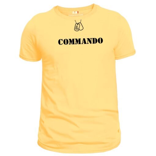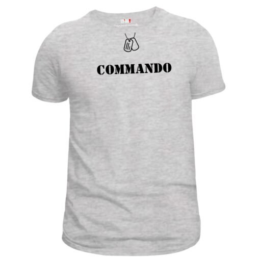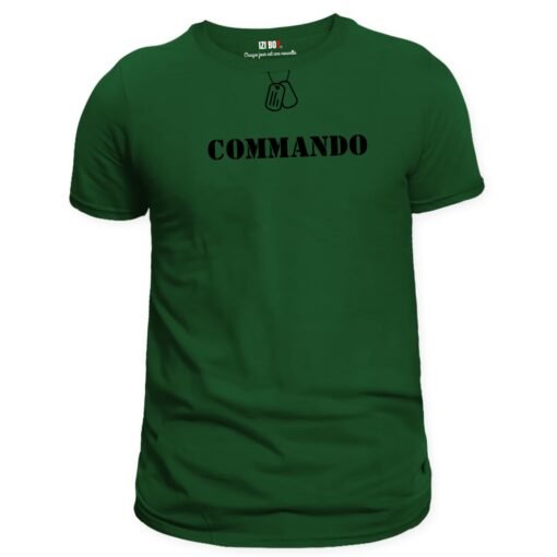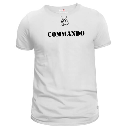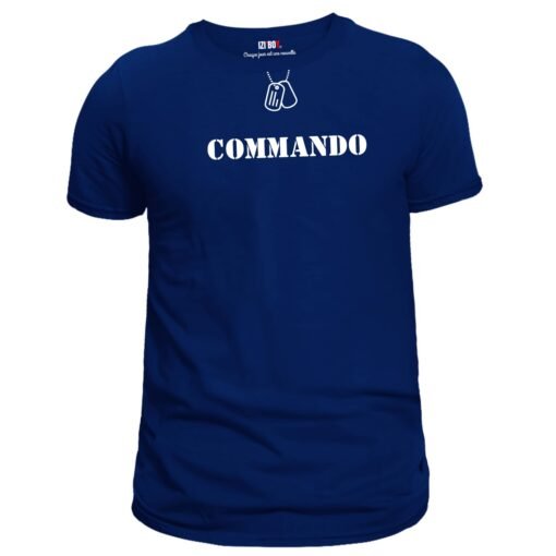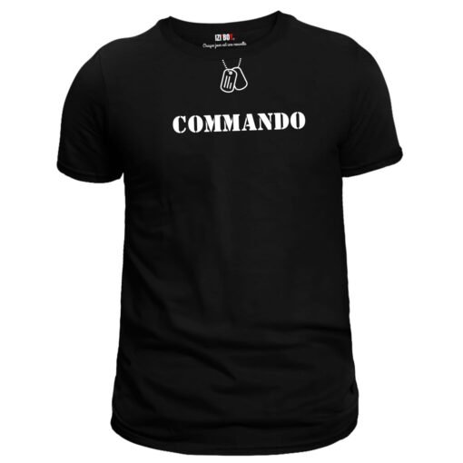 Le design de ce t-shirt repose sur des éléments graphiques percutants. Tout d’abord, une illustration noire de plaques d’identité avec une chaînette souligne le col. Ce motif emblématique rend hommage aux valeurs de courage des unités d’élite. Ensuite, l’inscription “commando” s’affiche en grand format sur la poitrine. Ce marquage noir affirme votre style avec une assurance indéniable. Enfin, la structure tubulaire sans coutures latérales offre une netteté visuelle parfaite. Ces détails transforment un simple t-shirt en un véritable vêtement de caractère.