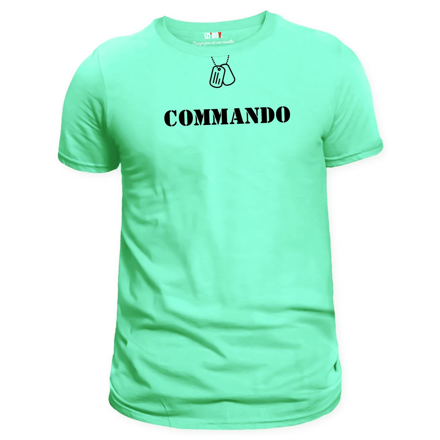 Le t-shirt Commando : l’affirmation d’un style d’élite. Réalisé en jersey 100% coton (180g/m²), ce t-shirt robuste assure un confort durable. Il arbore un motif de plaques d’identité et un marquage “commando” audacieux sur la poitrine. Sa structure tubulaire sans étiquette garantit une silhouette parfaite et une douceur totale. Disponible en 11 coloris, du S au 2XL, il cache un message positif motivant. L’équipement essentiel de votre quotidien.