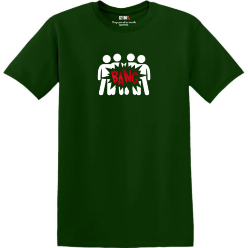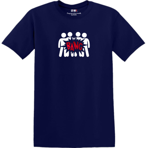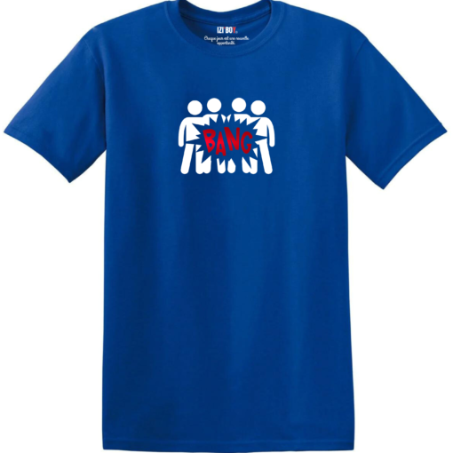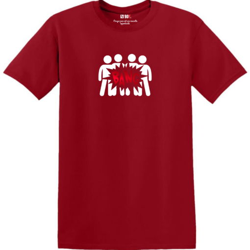 Incarnez le groupe avec ce design audacieux. Le mot “Bang” en rouge métallisé au centre témoigne de votre esprit intrépide et affirmé.