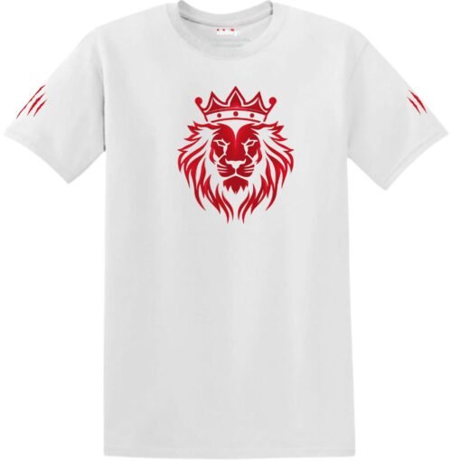 Sur chaque manche, des griffes de lion rouges métalliques viennent compléter le motif principal, apportant un détail supplémentaire à ce t-shirt exceptionnel. Disponible en plusieurs tailles et couleurs, ce t-shirt s’adapte à tous les goûts et morphologies, sans jamais sacrifier au confort. Il est conçu pour vous offrir à la fois élégance et confort au quotidien.