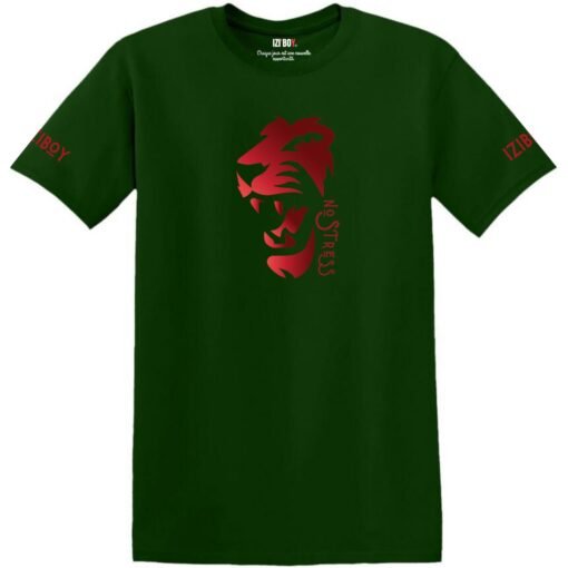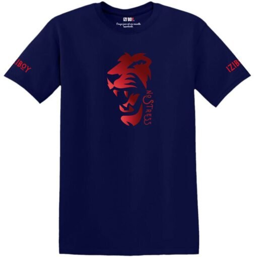 Le t-shirt Iziboy “No Stress” arbore un motif de tête de lion rugissant avec l’inscription “No Stress” en rouge métallique. Disponible en plusieurs couleurs, ce t-shirt en 100 % coton offre confort et style, avec un message positif caché à l’intérieur.