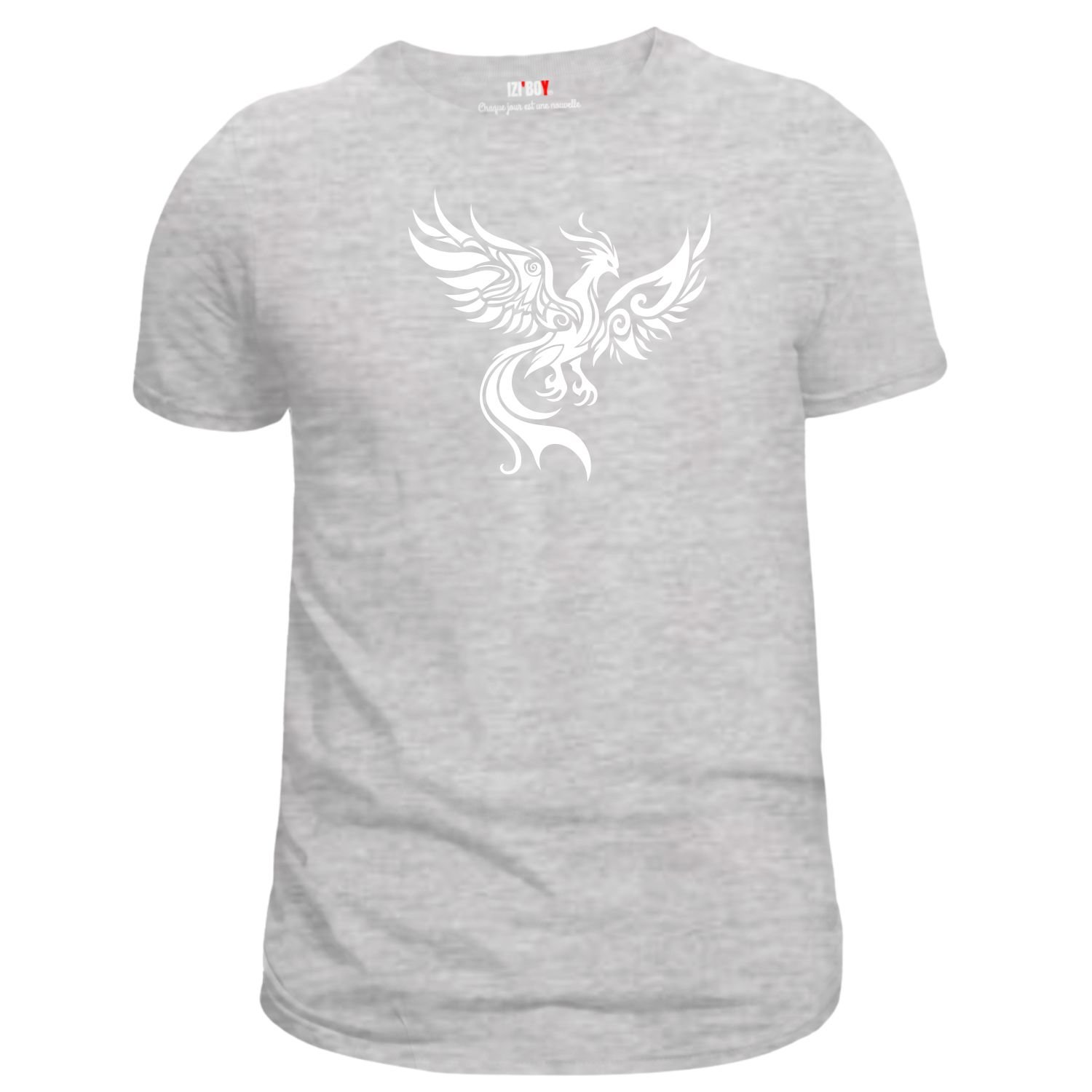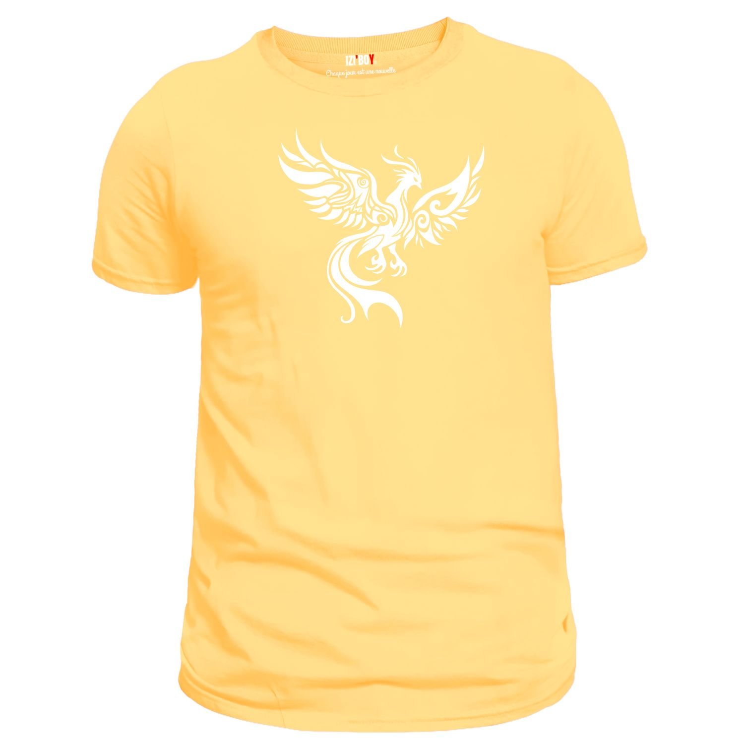 Le t-shirt Phénix affiche un motif majestueux monochrome, symbole de renaissance et de force. Fabriqué en jersey 100 % coton 180 g/m², il offre confort et durabilité. Col rond, coupe régulière et sans étiquette. Disponible en 11 coloris et du S au 2XL, avec un message positif imprimé à l’intérieur.