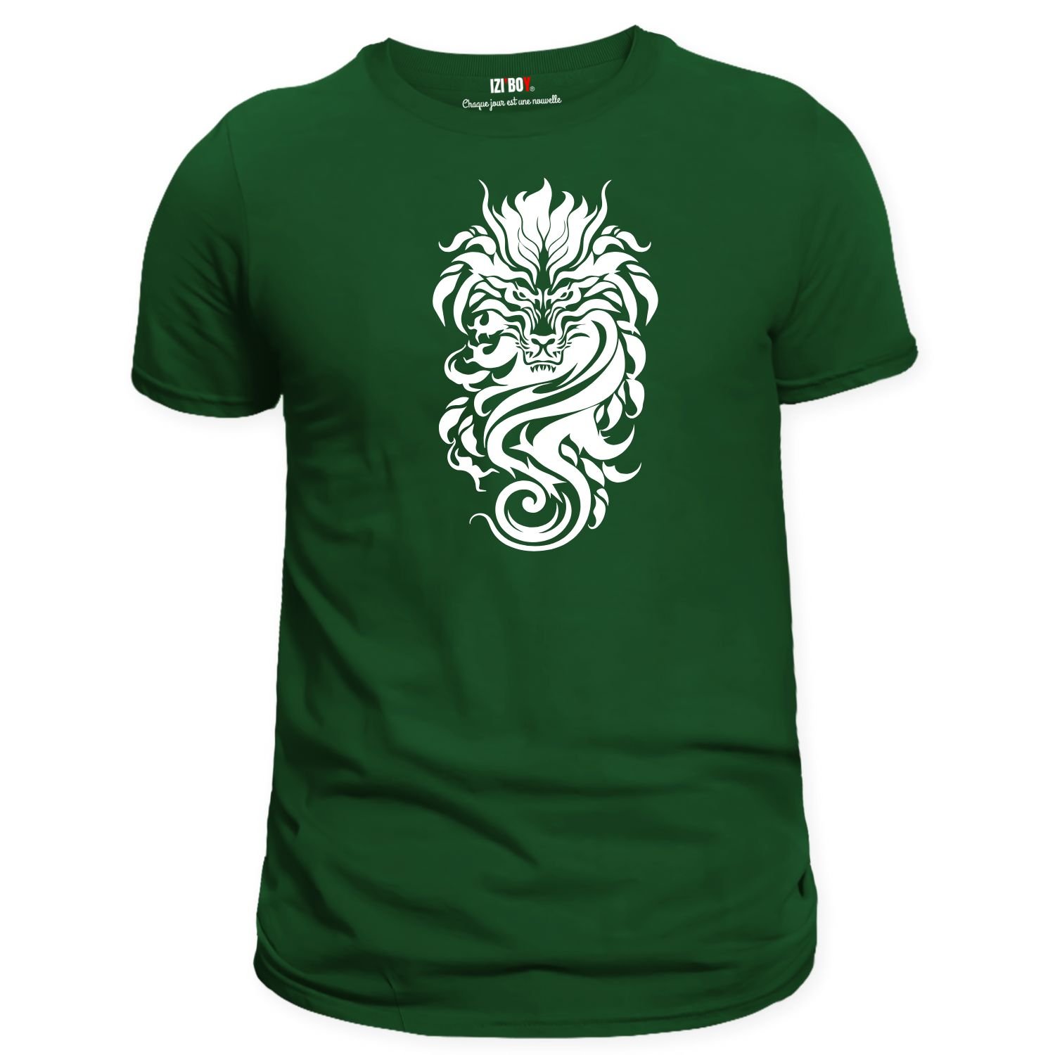 De plus, ce t-shirt se distingue par son esthétisme audacieux. Le dessin tribal de la tête de dragon s’impose comme une véritable œuvre graphique. Les flammes qui l’entourent accentuent son intensité et renforcent son aspect agressif. Ce motif ne laisse personne indifférent et affirme une personnalité sans compromis.