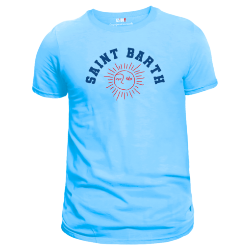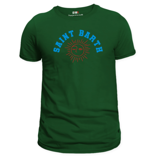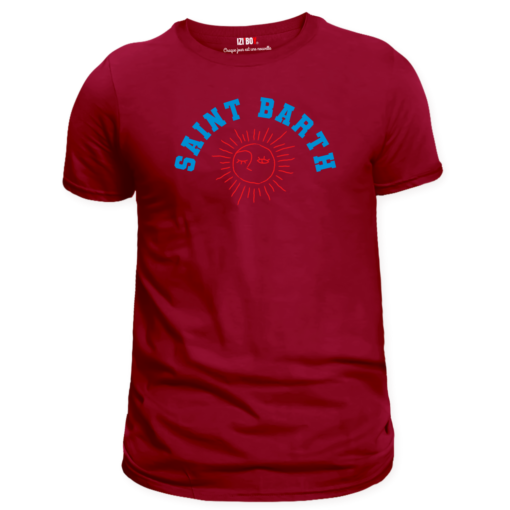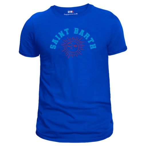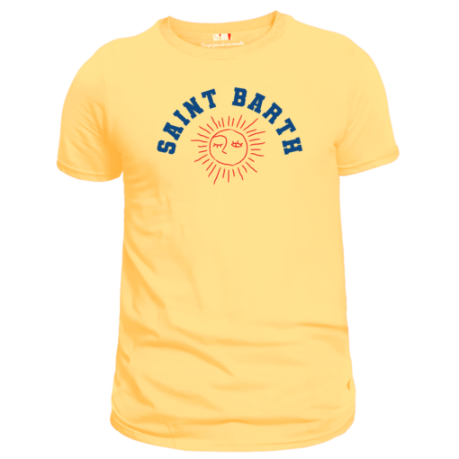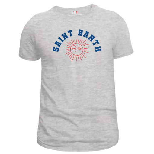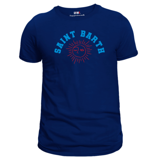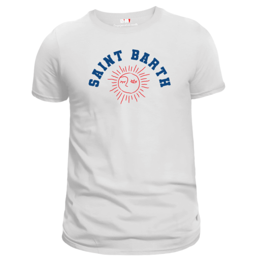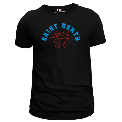 D’abord, ce t-shirt arbore une grande inscription “Saint Barth” sur le devant. Ensuite, un soleil stylisé vient illuminer le design. Ce motif évoque immédiatement les plages paradisiaques et l’ambiance détendue des Caraïbes. Enfin, chaque détail de l’imprimé a été pensé pour refléter une esthétique à la fois moderne et intemporelle.